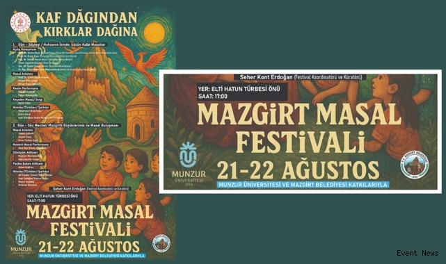 21-22 Ağustos tarihlerinde, Mazgirt Belediyesi ev sahipliğinde ve Munzur Üniversitesi işbirliğiyle düzenlenecek “Kaf Dağından Kırklar Dağı’na Mazgirt Masal Festivali”, Türkiye’nin dört bir yanından gelecek anlatıcıları, sanatçıları akademisyen ve araştırmacıları Mazgirt’in kadim tarihiyle buluşturuyor. UNESCO Türkiye Millî Komisyonu Somut Olmayan Kültürel Miras İhtisas Komitesi üyesi Prof. Dr. Evrim Ölçer Özünel’in katılımı, festival somut olmayan kültürel mirasın korunması ve kuşaklararası aktarımının önemine dikkat çekecek. Festivalin koordinatörlüğü ve küratörlüğünü, bölgedeki kültürel hafızaya dair çalışmalarıyla tanınan Seher Kont Erdoğan üstleniyor.